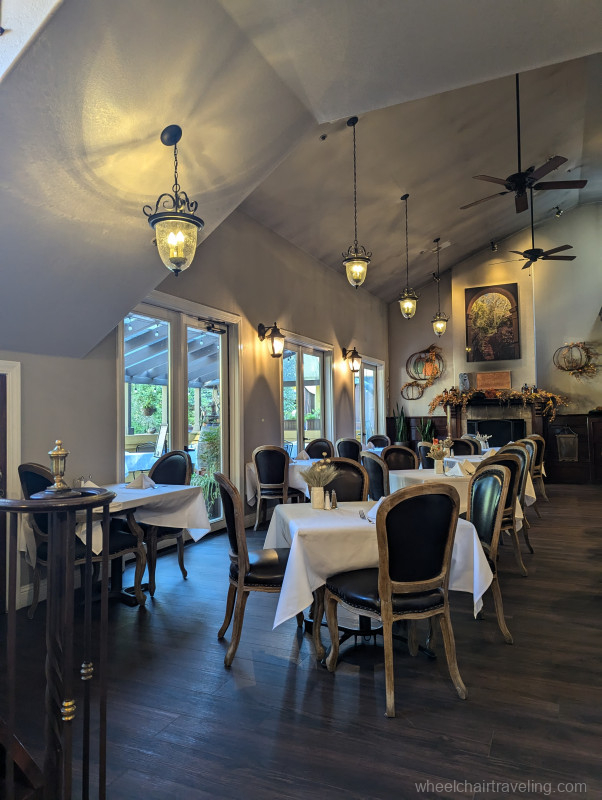 For a more casual setting, guests can visit the Beer Garden, a scenic outdoor area offering a selection of local craft beers, wines, and a light menu, including pizza from an outdoor stone oven. The Beer Garden is fully accessible and provides a relaxing space to unwind. To access the Beer Garden requires traveling up and over the bridge; the decent into the garden is short and steep (not ADA) and doesn’t have a landing pad. Additionally, the location of the Beer Garden serves as the entry point to the Bob Jones Trail, a paved and wheelchair-accessible path that leads to Avila Beach, offering a beautiful and leisurely route for guests to explore the surrounding nature.