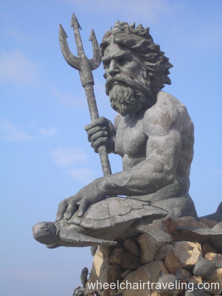 Fun in the SunThe boardwalk parallels Atlantic Avenue, running north-south between 40th Street and Rudee Inlet. Sidewalks with curb-cuts provide access between the boardwalk and Atlantic Avenue at each cross street. Every couple of blocks along the length of the boardwalk, there are public parks or plazas where accessible restrooms and drinking fountains can be found. Many of the parks feature public art like sculptures, monuments, or murals. Outdoor stages located at 7th Street, 17th Street, 24th Street and Neptune Parks host concerts, movies and special events. Information kiosks are located at 17th and 24th streets. An accessible fishing pier (fee) is located on the boardwalk between 14th and 15th streets.