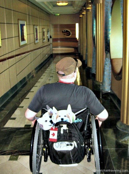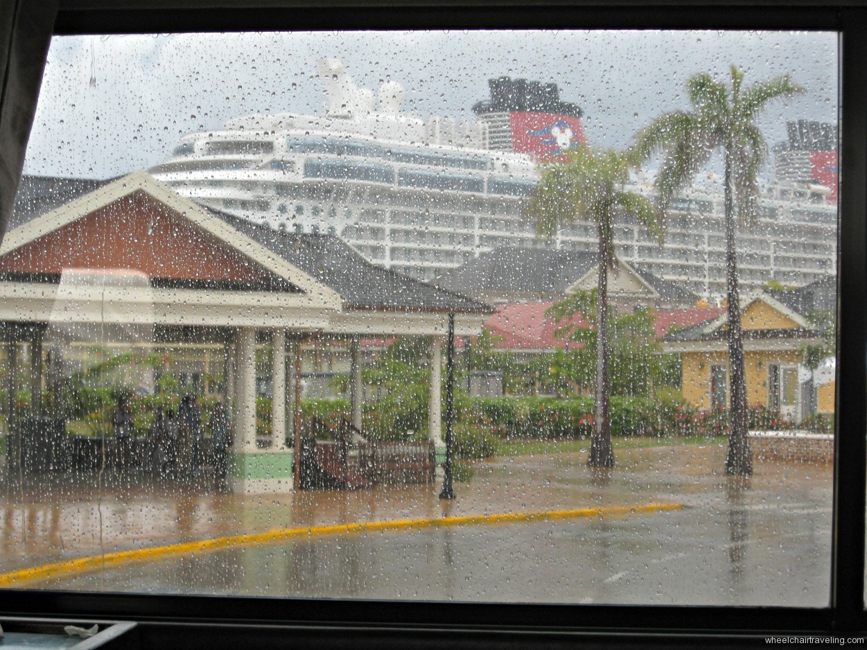 Like the 4 day Bahamian cruise, our 7 Day Western Caribbean sailed out of Port Canaveral. There are several options to get to the port: taxis, self-parking or Disney transportation from the Orlando airport or any of the Disney resorts. During the cruise booking process you have the ability to add Disney’s ground transportation service from the airport to the port and back or to one of the Disney’s hotels after the cruise. Disney operates buses with wheelchair lifts and, at booking time, they will ask you if you need one. For more information on this service I recommend talking to a cruise booking agent, or online at Disney Cruise Line’s website. For wheelchair travelers going directly from the airport, or from a Disney property, it’s a nice service to have and it takes some of the hassles of luggage management out of the way. If you choose to utilize Disney’s transportation, you let the Hyatt staff know at check-in that you will be sailing with Disney, and on sail day, your luggage will be picked up from your room in the morning and will travel to the ship. Your luggage will be delivered to your stateroom at some point on Embarkation day.