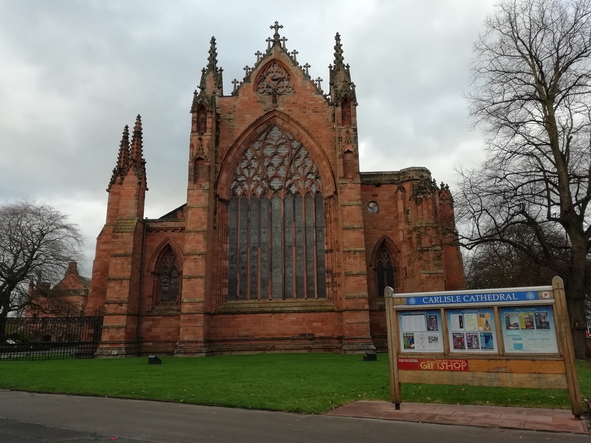 Carlisle Cathedral: In 1122, King Henry I approved the foundation of a priory in Carlisle. The town gained the status of a City when it’s diocese was formed in 1133, and the priory then became Carlisle Cathedral. The Cathedral is on Castle Street, so is very close to the Castle. During the time of the English Civil War, a portion of the nave of the cathedral was demolished by the Scottish Presbyterian Army in order to use the stone to reinforce Carlisle Castle (the Castle has changed hands between the English and Scottish over the years). See if you can find the face in the ceiling. There is a wide tarmacked road leading to the entrance door, then level access through the main door – volunteers are available to assist if you need help with the door. All of the Cathedral has wheelchair access, there is level access to the North and South aisle and the choir. The high altar is accessed via portable ramps, and there is a platform lift down to the Treasury. The bell tower does not have public access. Entry into the Cathedral is free, however donations to the running costs of the building are appreciated. Limited blue badge holder parking is available in the Cathedral grounds, and there is a temporary accessible toilet available at the rear of the car park. As the Cathedral is in the City Centre, there are lots of cafes and restaurants nearby, like the Cake & Ales coffee shop.