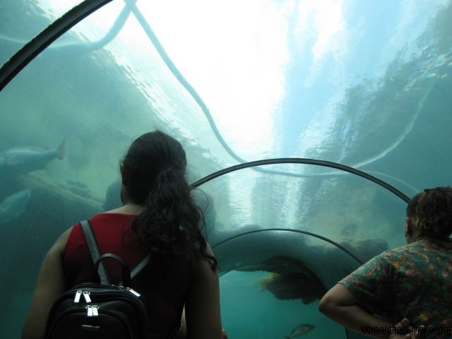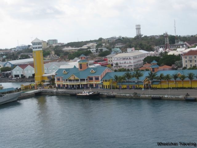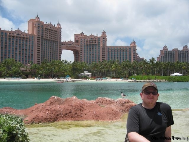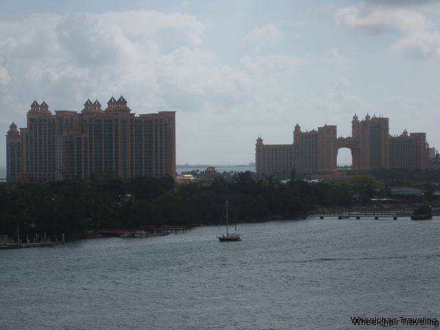 Once our tour guide got the right information, we went to our tour-bus. Our bus didn’t have a lift on it, and I don’t think any buses being operated by the tour company did, you will have to be transferred on the bus, and the chair put into the bus with you. The drive from the port to Atlantis was a short drive through the capital, but it will let you see of some of the sights, and your bus driver will point out some historic facts along the way. The tour of the Atlantis Aquarium itself was approximately 45 minutes, and was led by a local tour guide. Every part of the tour was wheelchair accessible, and you will see a wide variety of marine life, spread out over 14 exhibits and 13 lagoons. The layout of the Aquarium was well done, and the sheer number of sea creatures was well over 50,000. There are underground passages and walkways that let you see the marine life from below the water line. This made for some excellent viewing of sharks and barracudas. However, the underground tunnels did have some uneven pathways, which required some extra care when maneuvering our wheelchair in those sections.