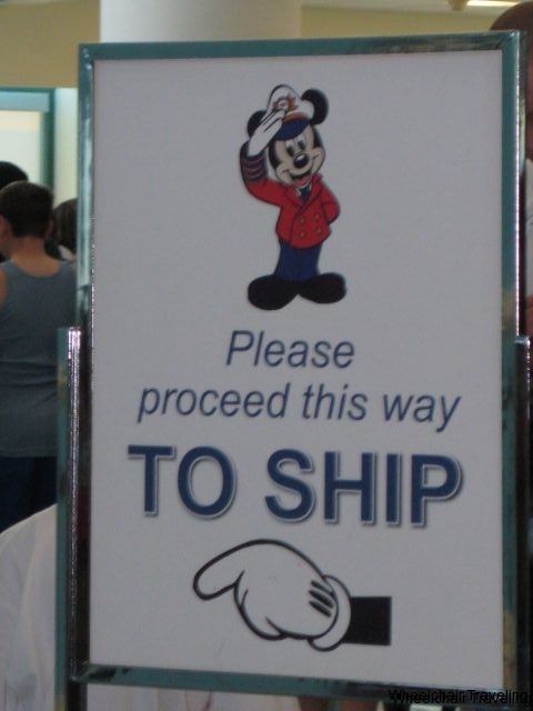 Once at Port Canaveral, the check-in process is well organized. First like in an airport, you go through the security screening process. Wheelchair users will bypass the metal detector and a manual inspection will be administered. From there you will take the elevator up to the second floor to the check-in area. This area can be very crowded, so mobility may be limited as you make your way to the check-in counter. DCL has amazing customer service, and every aspect of the check-in process is helped along with some wonderful employees aka Cast Members, who will help guide you. The check-in counter is all one height unfortunately and doesn’t have a section for a wheelchair user to access, but a cast member will work with you to check you in. You’ll receive your Key To The World, (KTTW) card, which will open your stateroom and can be used to charge purchases.