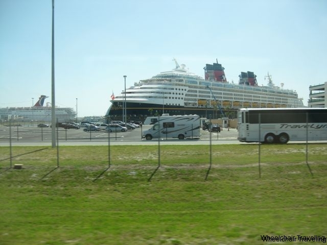 If you choose to utilize Disney’s transportation, you let the Hyatt staff know at check-in that you will be sailing with Disney, and on sail day, your luggage will be picked up from your room in the morning and will travel to the ship. Your luggage will be delivered to your stateroom at some point on Embarkation day. Disney operates buses with wheelchair lifts and, at booking time, they will ask you if you need one. For more information on this service I recommend talking to a cruise booking agent, or online at Disney Cruise Line’s website. For wheelchair travelers it’s a nice service to have and it takes some of the hassles of luggage management out of the way. You should state that we’ve never actually used this service.