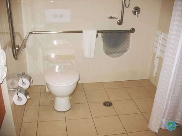 If you prefer to stay in the middle of everything, IBIS World Square is located in the central CBD on Pitt Street, Sydney. This hotel has level entry through automatic glass doors and nine rooms accessible for wheelchairs. Bathrooms include a roll-in shower, grab rail and a lowered basin. All rooms offer a view of city buildings.