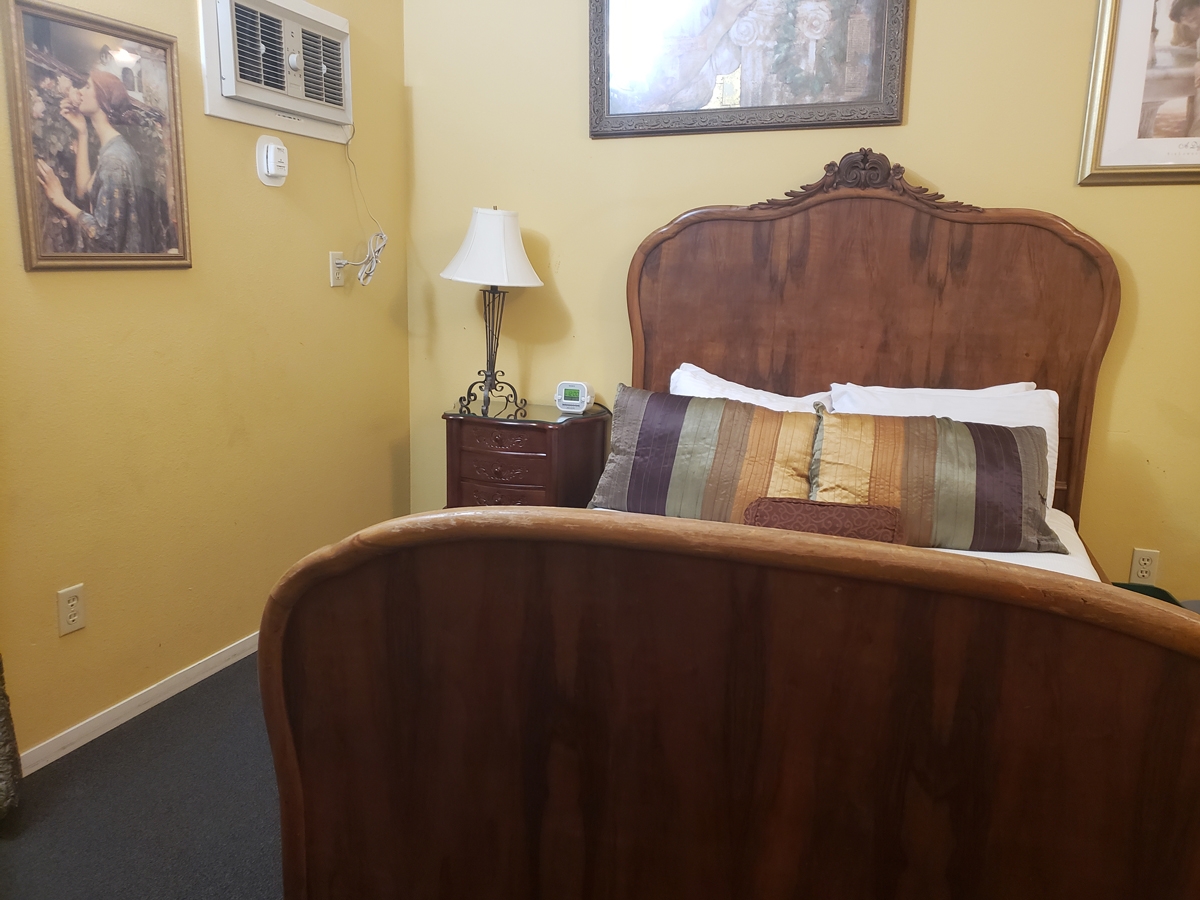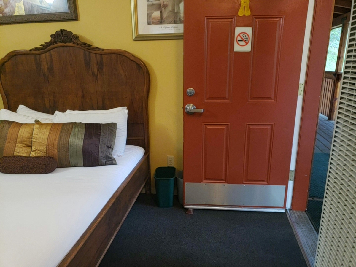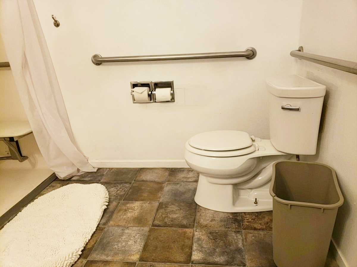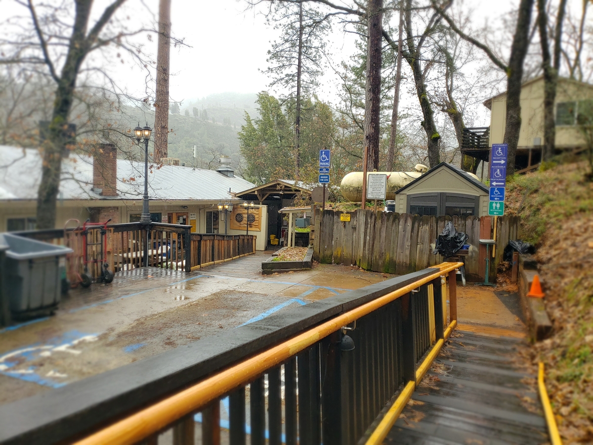 Soloman Building’s unit #A and #B as designated accessible rooms with a shared bathroom in between. One ADA handicapped parking spot is located right in front of the Soloman Building, and a ramp leads up to the patio deck to the rooms.
